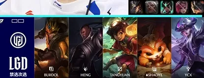 LGD选用:Burdol纳尔,Heng皇子,Tangyuan辛德拉,Shaoye卢锡安,Ycx米利欧