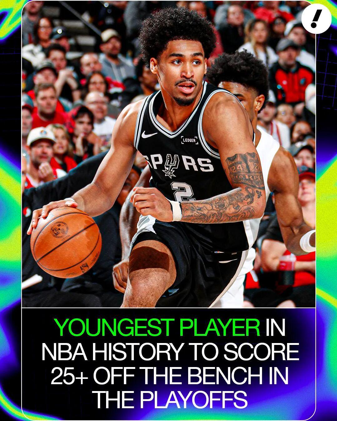 ——单场27分是马刺自邓肯(33分)之后的新秀球员季后赛最高得分;