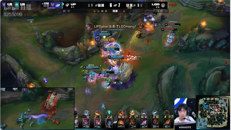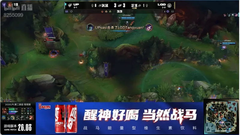 33分钟:UP抓到对方卢锡安脱节的机会直接击杀卢锡安再次拿到大龙