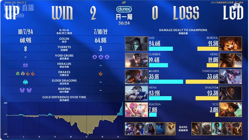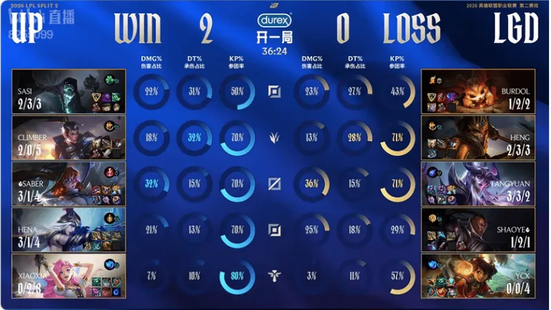 Game2:UP蓝色方,LGD红色方